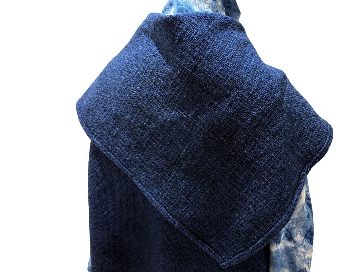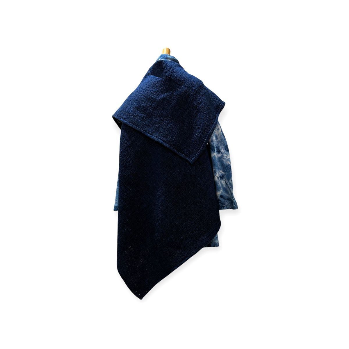 藍染カディ変形ベストは、伝統と現代を見事に融合させた一品です。このベストはカディという厚みのあるざっくりとした風合いが魅力です。美しい藍色の深みは、見る人を惹きつけ、さまざまなスタイルに合わせやすいアイテムです。