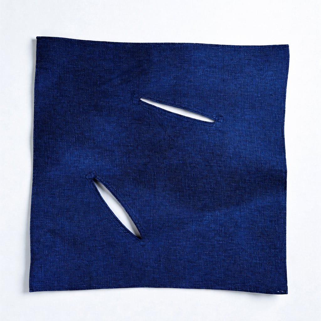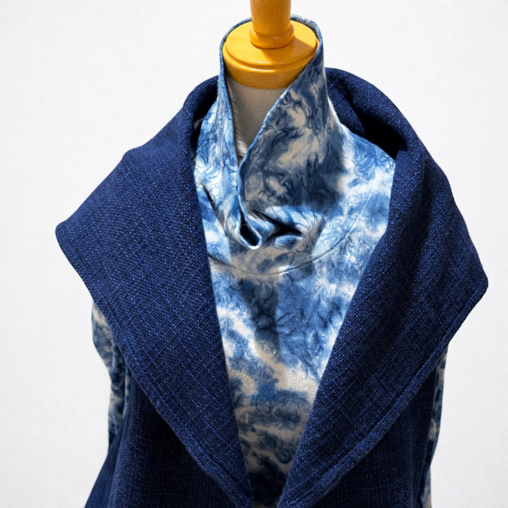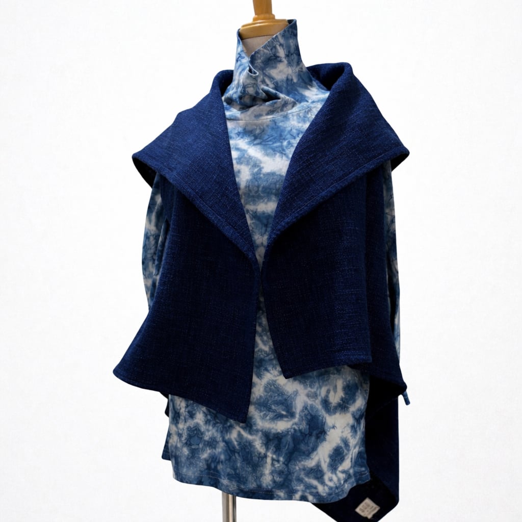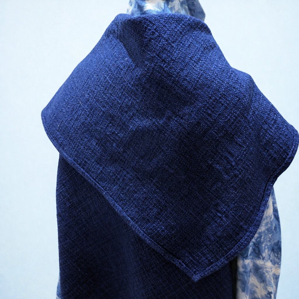 手紡ぎ・手織りのカディ生地を、深みのある藍で丁寧に染め上げた変形ベスト。