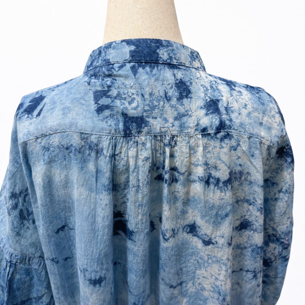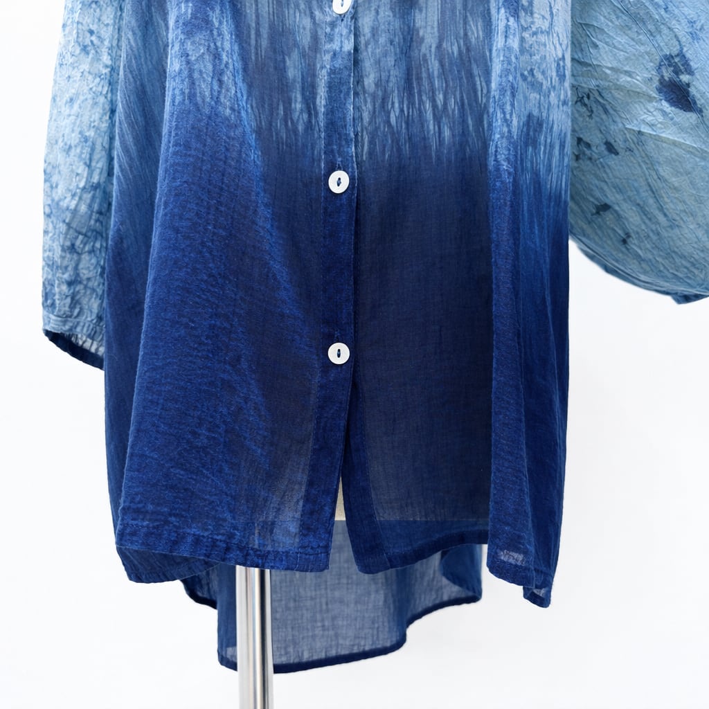 薄手で軽やかなボイル生地に、職人の手仕事による藍染を施した一枚。
