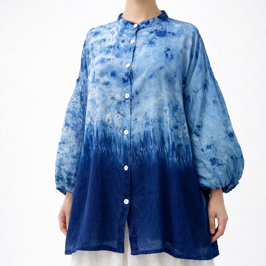 日常使いから特別な日の装いまで、長く愛用したくなる藍染ブラウスです。