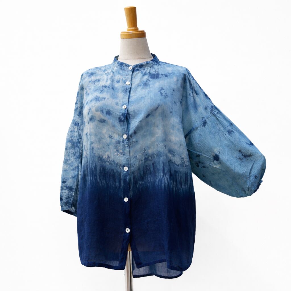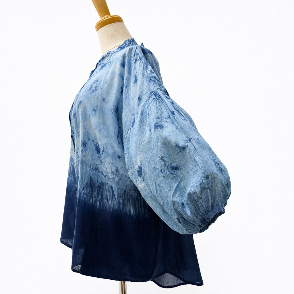 ボイル袖ボリュームブラウス(ぼかし籠染め)